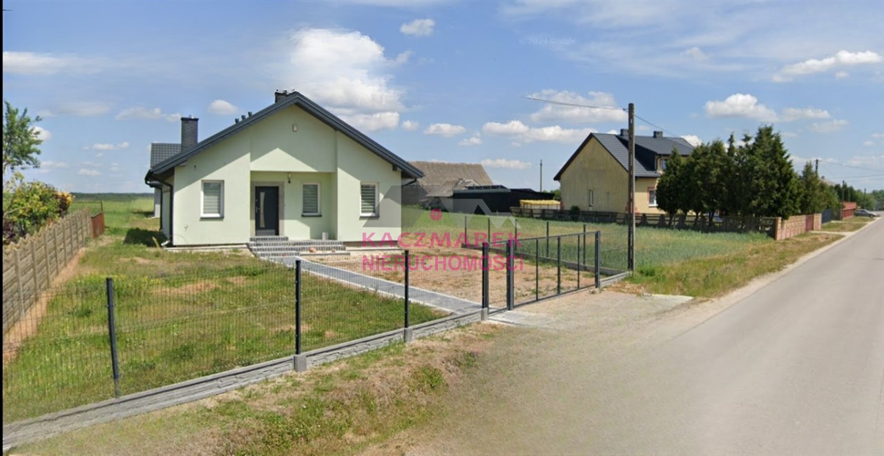 Parterowy budynek mieszkalny jednorodzinny, o powierzchni zabudowy 99m2 i powierzchni użytkowej 73,56m2 wybudowany z pustaka z betonu komórkowego, kryty blachodachówką.